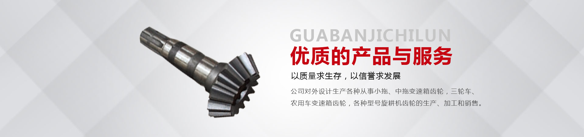 本廠位于省會(huì)東南60公里的全國重點(diǎn)鎮(zhèn)——大陸村鎮(zhèn)。本廠在市場(chǎng)內(nèi)設(shè)有銷售公司,經(jīng)銷工程機(jī)械;農(nóng)用拖拉機(jī);農(nóng)機(jī)具的整機(jī)和全車配件。市場(chǎng)緊靠308國道,距青銀高速寧晉路口14公里,交通十分方便。主要從事小拖、中拖變速箱齒輪,三輪車、農(nóng)用車變速箱齒輪,各種型號(hào)旋耕機(jī)齒輪、收獲機(jī)械變速箱齒輪的生產(chǎn)、加工和銷售。同時(shí)加工定做各種直齒輪,傘齒輪,斜齒輪,鏈輪,齒輪軸等機(jī)械產(chǎn)品。廠內(nèi)檢測(cè)手段齊全。十幾年來與河北、北京、山東、安徽、河南、吉林、陜西、山西、寧夏、黑龍江、遼寧等省市的企業(yè)建立了穩(wěn)固的業(yè)務(wù)關(guān)系。產(chǎn)品質(zhì)量穩(wěn)定、價(jià)格合理、供貨及時(shí)。